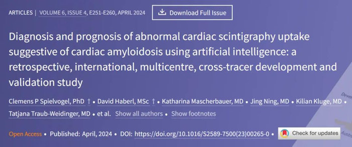 使用来自一个中心的数据开发了一种用于检测心脏淀粉样变性相关高级别心脏示踪剂摄取的人工智能系统,并在其余中心进行了独立验证。