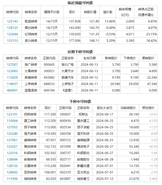 凯中转债、海环转债、华源转债、明电转02、明电转债。