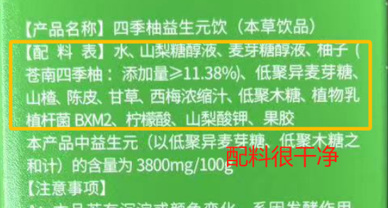 不得不说,相比市面上其他益生元饮品,江中的四季柚益生元饮干净很多!