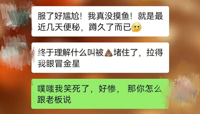 平时跟我关系不错的同事小杨,这几天经常上厕所摸鱼,终于在今天被老板叫进办公室训话了!