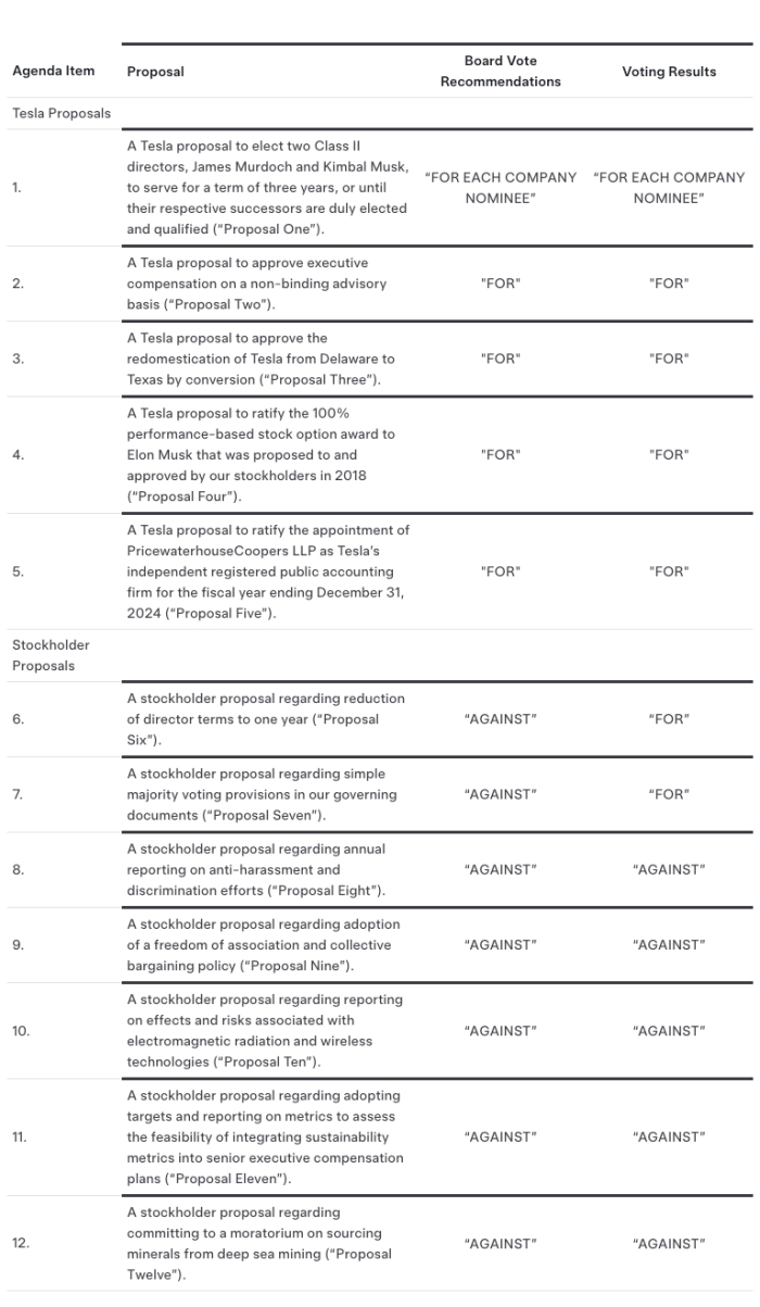 当地时间6月13日,美国电动汽车制造商特斯拉公布2024年度股东大会全部投票结果,并宣布特斯拉现在是一家得克萨斯州公司。特斯拉表示,已提交所有文件,以实现向得州公司的转换,并确认公司现已在得州注册成立。