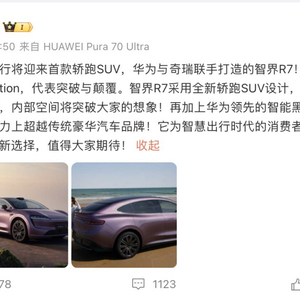 “R来自Revolution,代表着突破与颠覆。”华为常务董事、终端BG董事长、智能汽车解决方案BU董事长余承东在6月11日发微博表示,“智界R7在产品实力上超越传统豪华汽车品牌,它为智慧出行时代的消费者提供了更好的轿跑SUV新选择,值得大家期待。”
