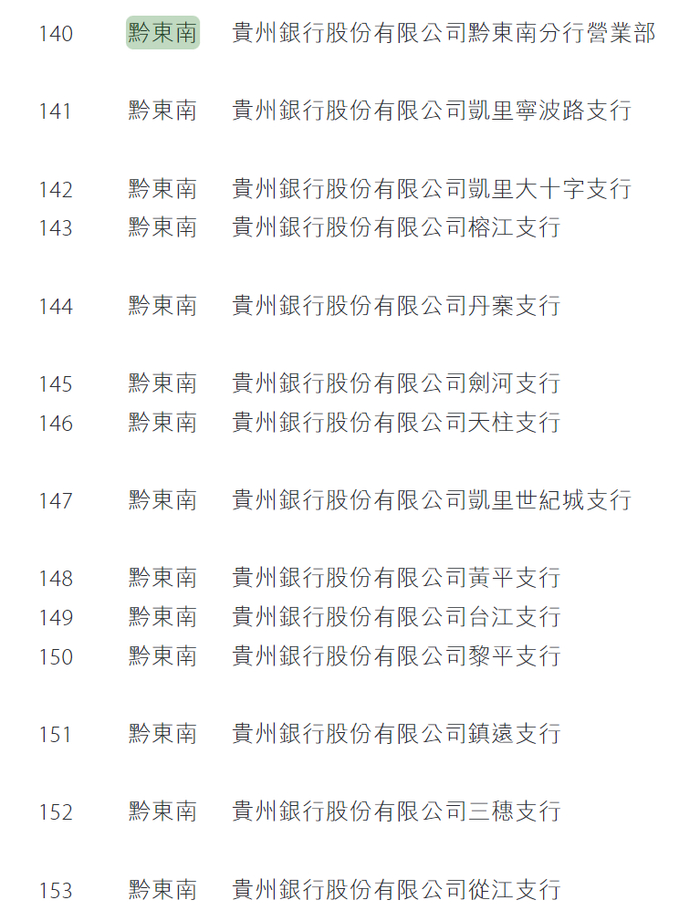 贵州银行2023年报显示,其在黔东南有分行营业部,还有20个支行。是仅次于贵阳、遵义的,第三大分支机构区域。