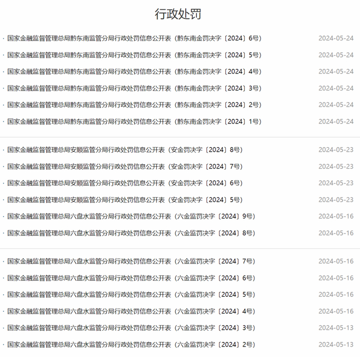 近期,国家金融监督管理总局贵州监管局连发了19个处罚,全部是贵州银行。