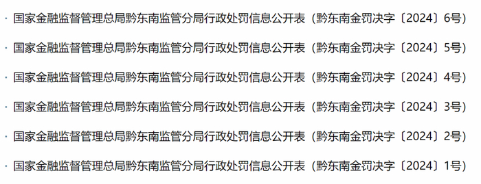 最新的是,黔东南监管分局,一下子发了六份罚单,全给了贵州银行。