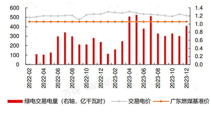 绿电交易是未来新能源发电的主要消纳方向,绿电电价相对燃煤基准价有明显溢价。