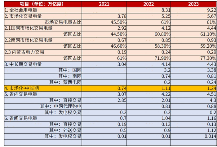 表:电力市场化情况