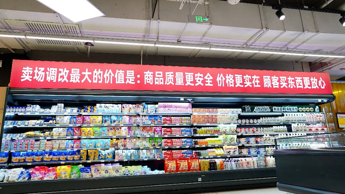 根据调改计划,卖场将淘汰下架70%的商品,根据胖东来的商品结构进行重新梳理,届时商品结构将达到胖东来的90%以上,最大幅度提升商品品质。