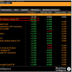 (彭博行业研究) ——中国的黄金ETF可能在金价创纪录之际继续以溢价交易,溢价最高达31%,原因是需求增加、申购规模受限以及经历数次停牌。资产管理规模最大的ETF--SPDR Gold Shares或面临来自其他管理费较低的同类产品的竞争。
