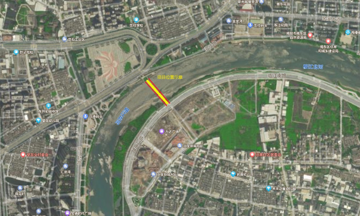 拟建旅游观光桥为人行桥梁,主桥长度约240米,桥位北侧为揭阳楼广场,由北至南跨越榕江北河,南侧为万达广场、汇金新城。拟建旅游观光桥距离上游梅东大桥约2.7公里,距离下游进贤门大桥约2.9公里(项目方位示意图见附件)。