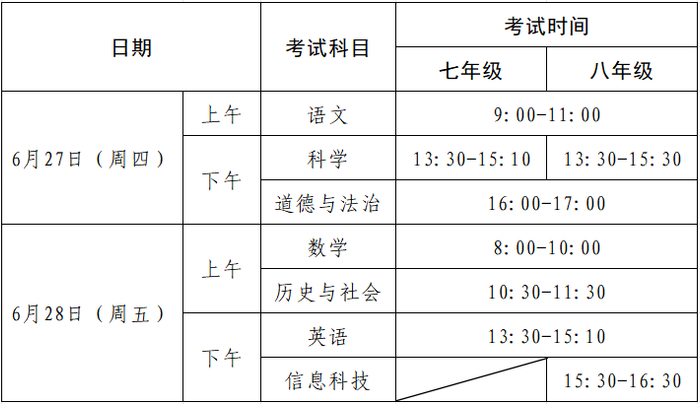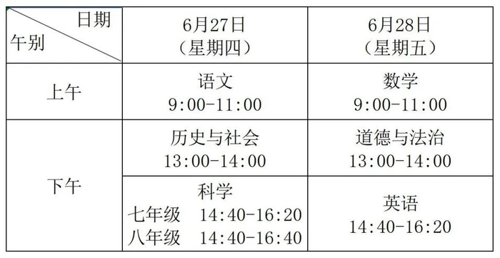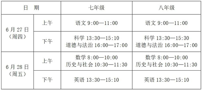 初中七八年级:2024年6月27日-28日(周四、周五)