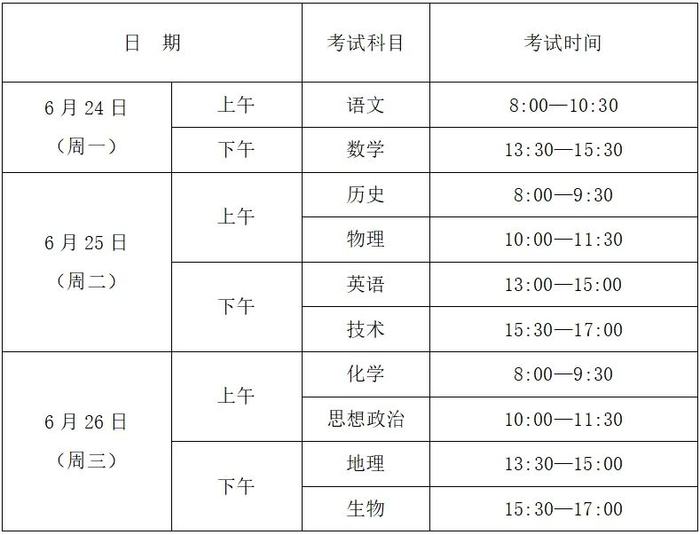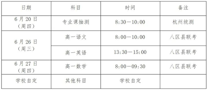普通高中6月26日—28日期末考试,7月1日—2日学考,高一7月4日学期结束,高二7月10日学期结束。