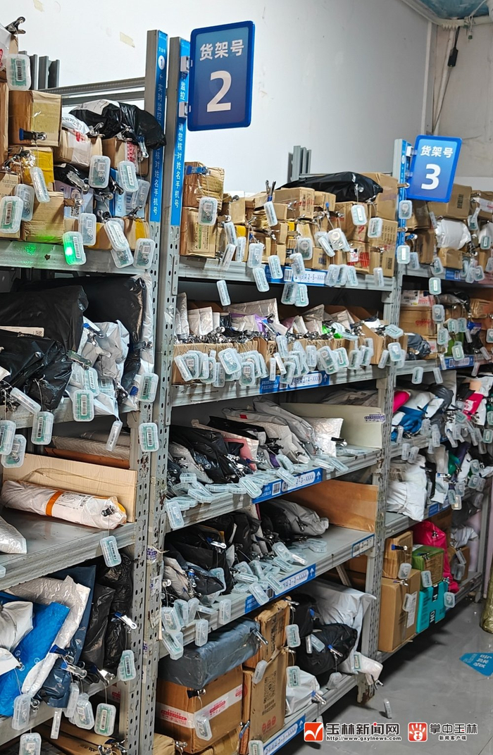 驿站货架上的快递都夹上了智能灯条,用户扫描取件时,对应的快递上的灯条就会发光、鸣叫,取件更方便快捷。