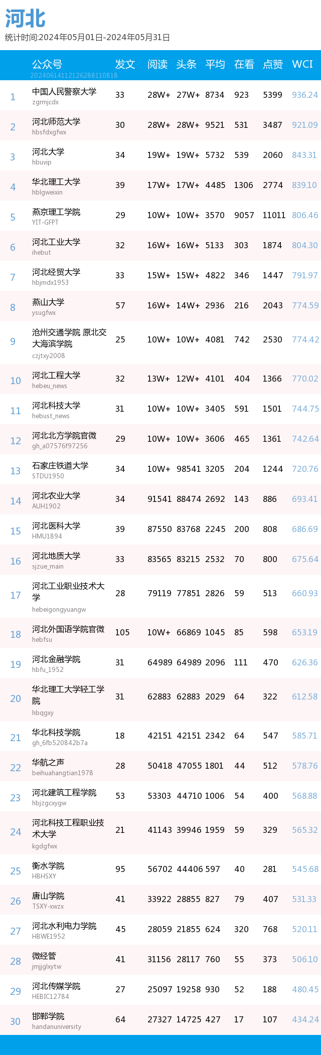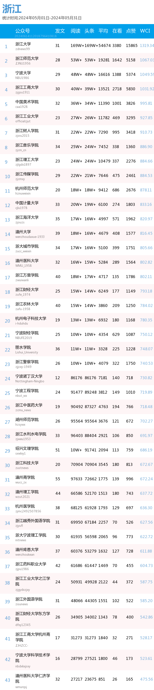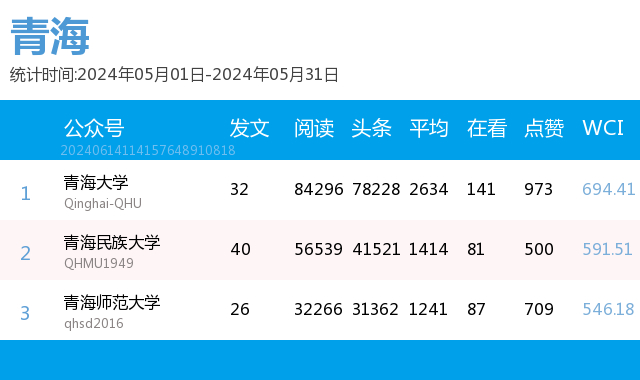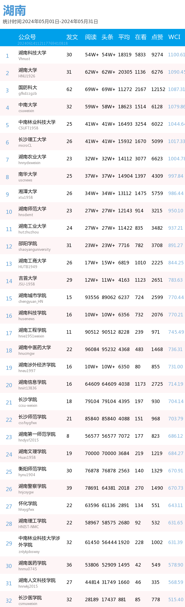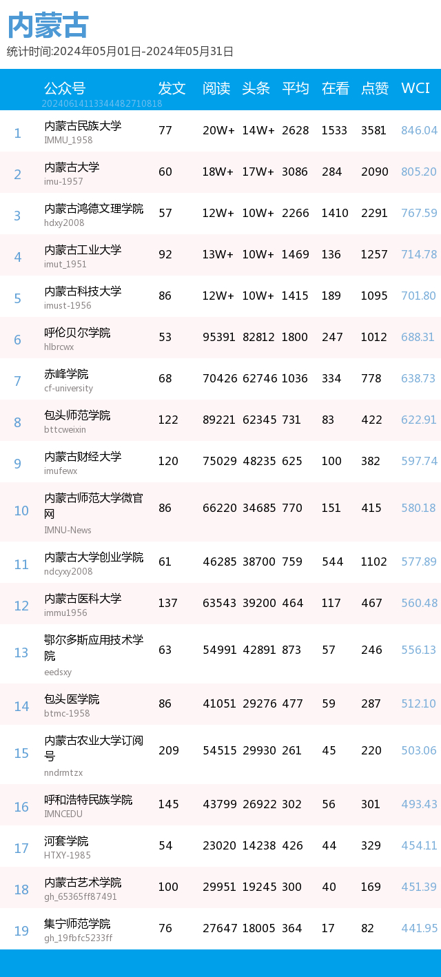 月榜 | 中国大学官微百强(2024年5月普通高校公号)