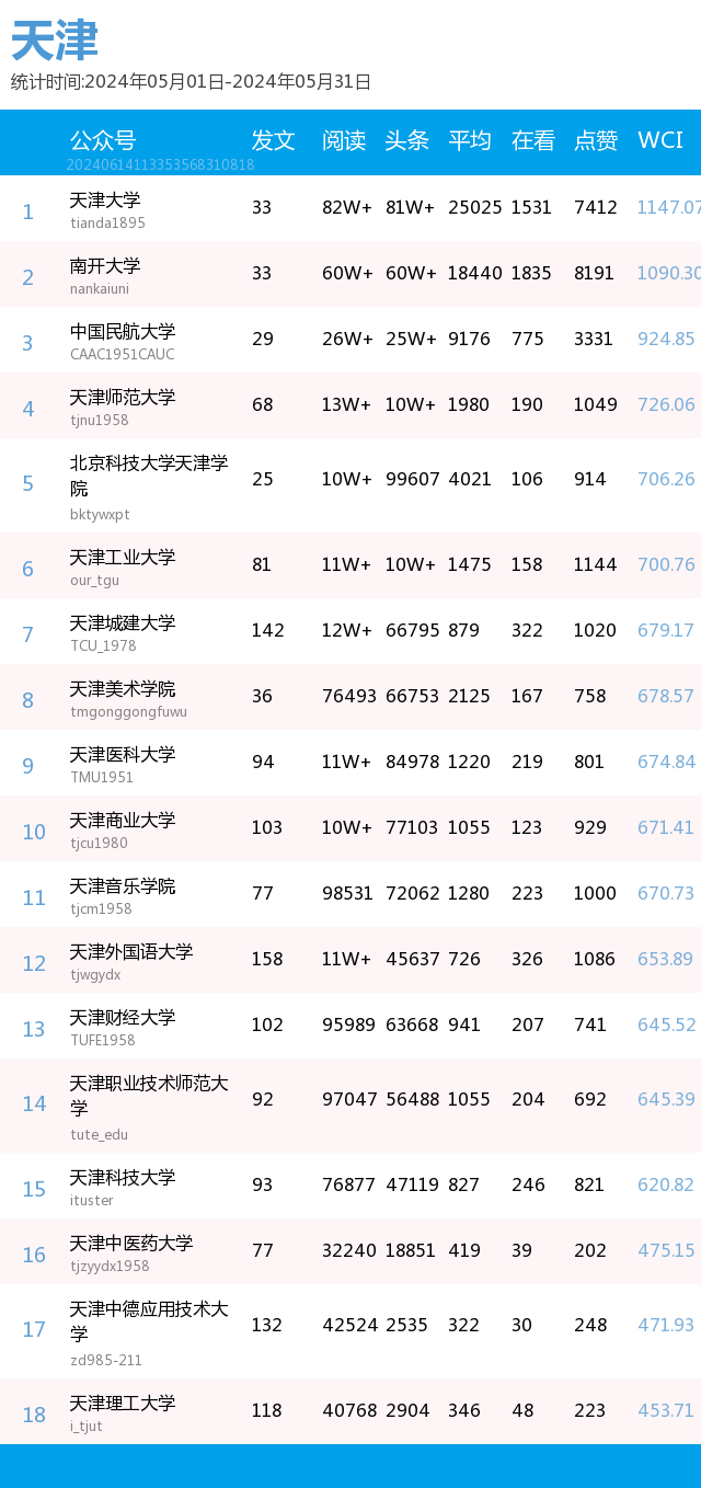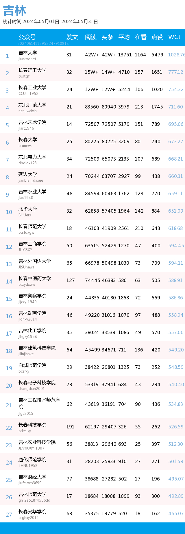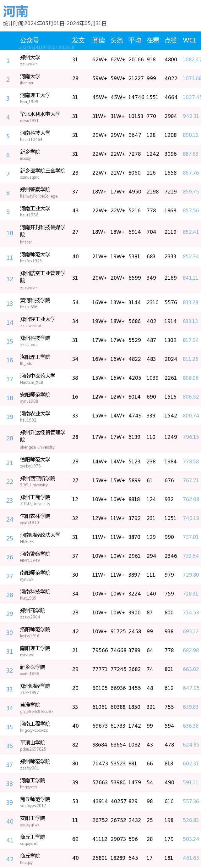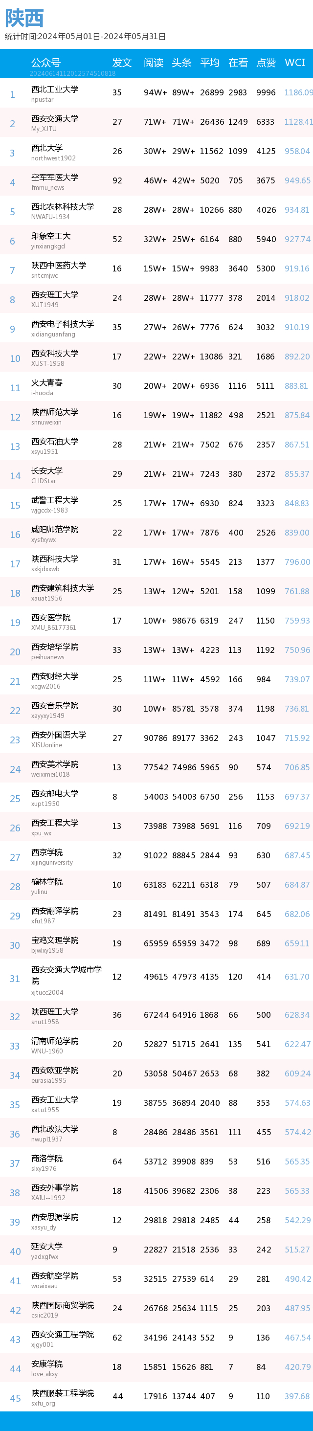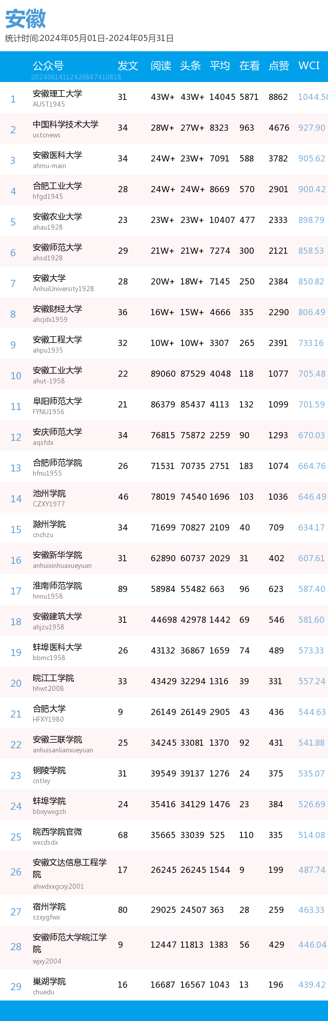 月榜 | 中国大学官微百强(2024年5月普通高校公号)