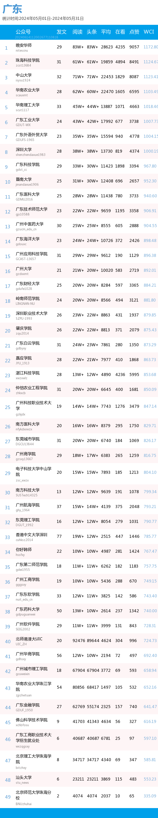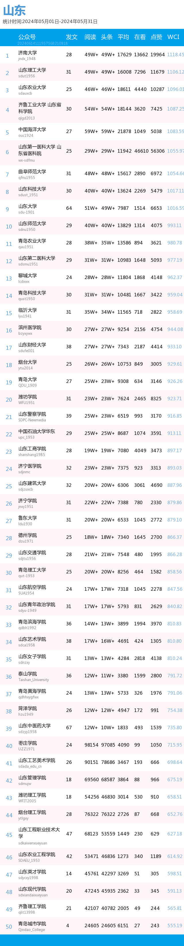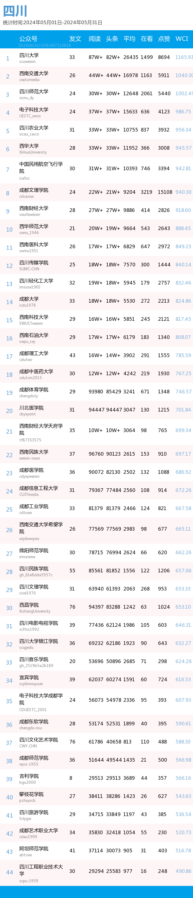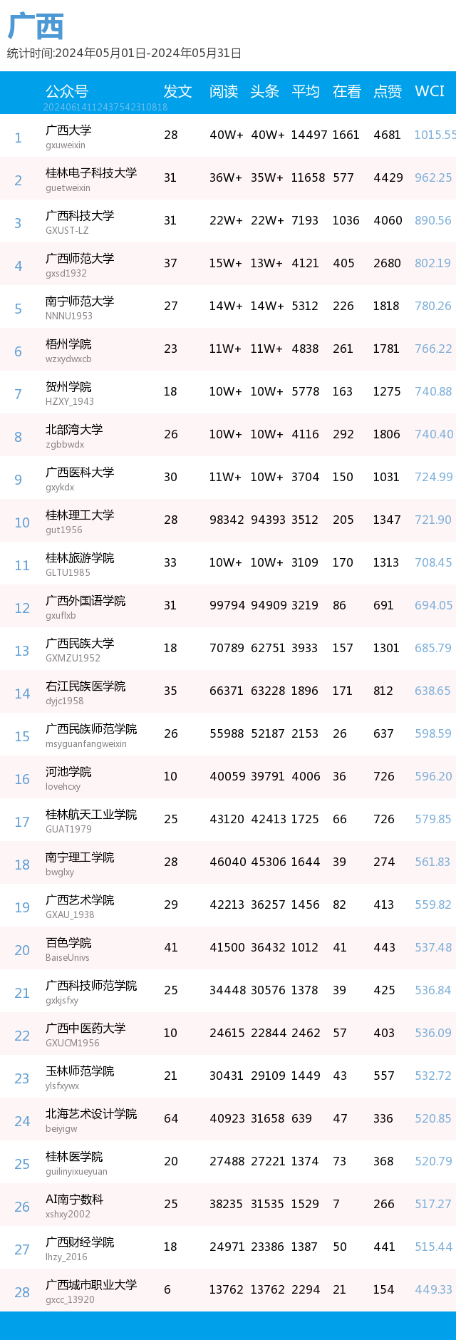 月榜 | 中国大学官微百强(2024年5月普通高校公号)