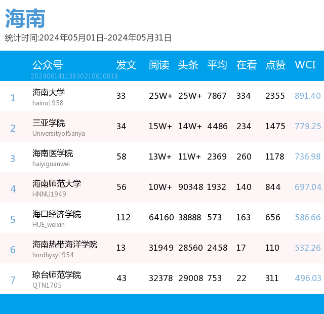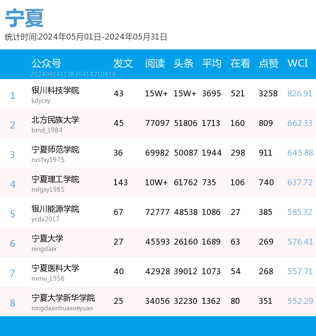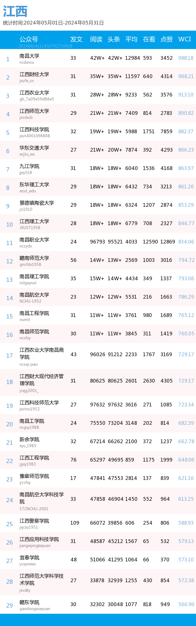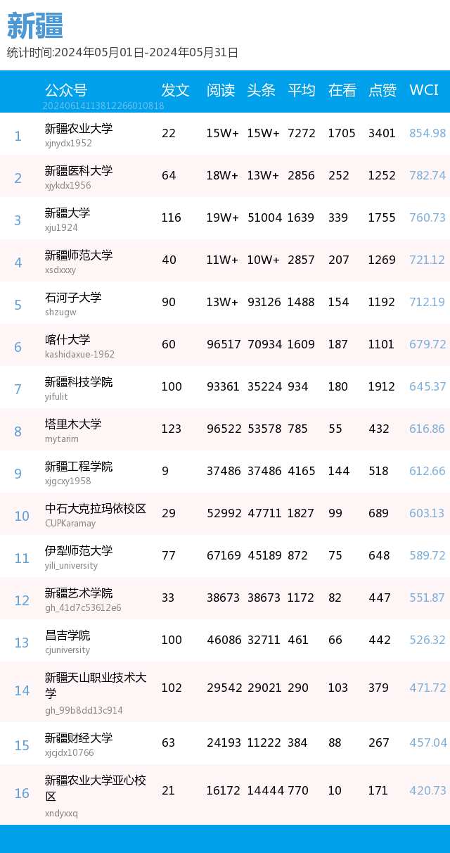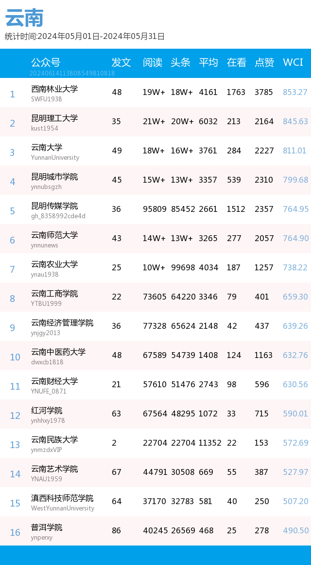注意:因未报名参榜或本期统计时间内无内容更新,故部分地区无高校公号上榜。