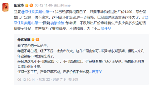 从紫金陈近期的发声可以看出,他对茅台的业绩增长持有相对乐观的态度,并认为茅台酒的价格在未来几年内不太可能跌破出厂价。