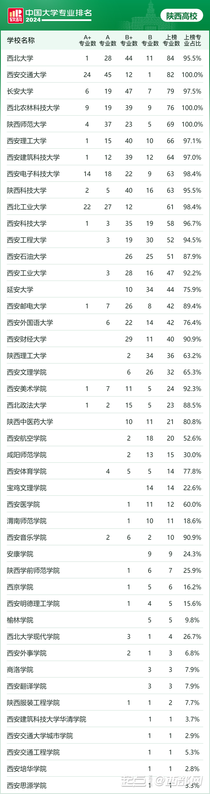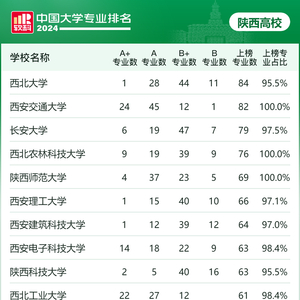 其中,西安交通大学有24个A+专业,居全省首位;