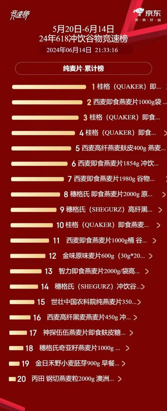 从具体产品角度来看,纯麦片品类中,前三名中出现了两斤装的桂格燕麦片围攻西麦品牌产品的情况。但不少消费者表示,还是更喜欢主打无添加的桂格品牌,最终销冠花落谁家值得期待。