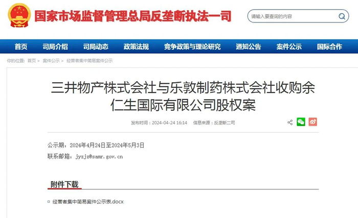 所以,国家市场监管总局专门对这个交易进行反垄断公示。