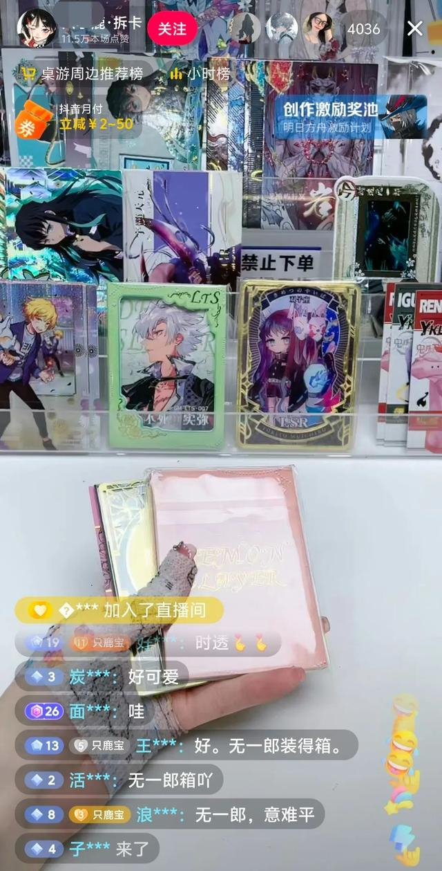 在大三学生林同学看来,无论是看直播抽卡,还是下单购买卡牌,都很解压。直播抽卡更具沉浸式和互动感,甚至因为下单的观众多,还要抢着下单,排队等待主播代自己拆卡。
