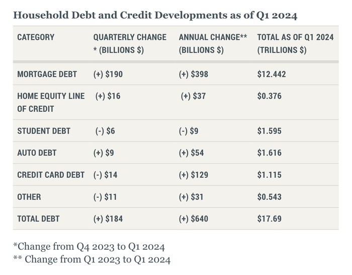 美国第一季度家庭债务——纽约联储数据