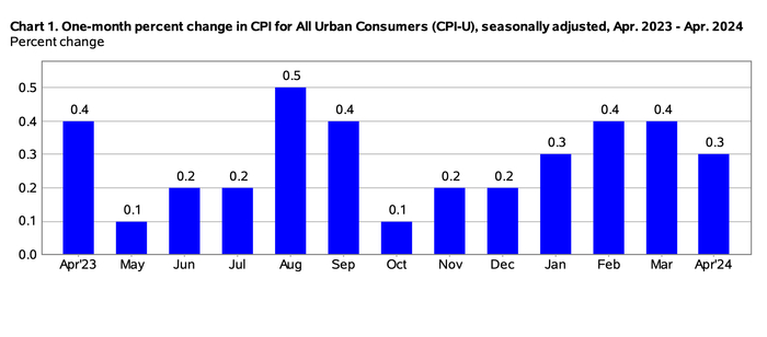 今年以来,美国通胀进展停滞甚至出现一定程度逆转。3月,美国消费者价格指数(CPI)同比涨3.5%,涨幅较2月扩大了0.3个百分点。直至4月,CPI环比涨幅仍达到0.3%,剔除食品和能源价格后的核心CPI同比涨3.6%,远超过美联储设定的2%长期目标。