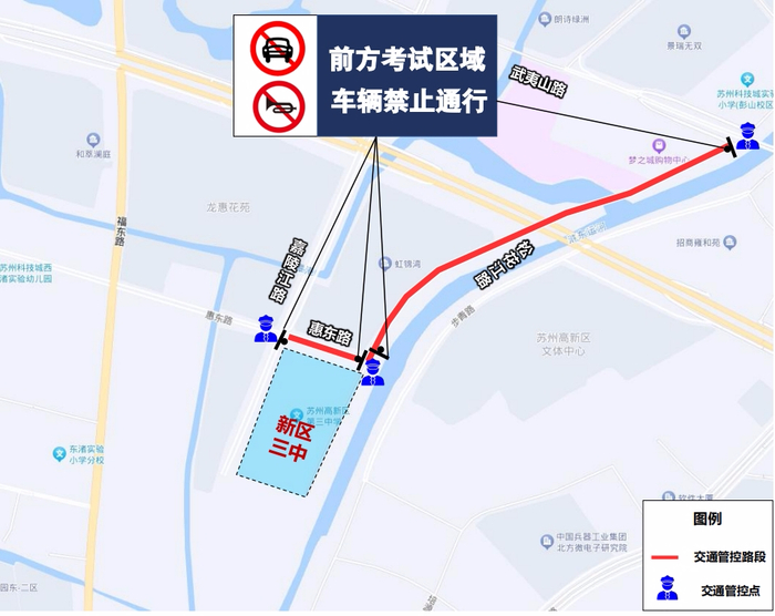 考试期间对文运路(惠昌路至水城路段)实施管控,禁止机动车辆通行,禁止机动车鸣笛。