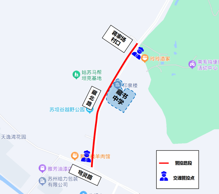 位于姑苏区三香路899号,因道路原因不设立交通管制区域及临时停车区域,接送车辆即停即走。