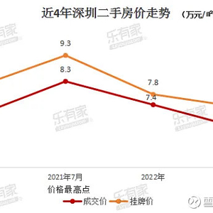 乐有家数据显示,2023年年末深圳的二手房均价跌至6.5万元/平方米,比2021年历史最高点8.3万元/㎡跌幅22%,比2022年跌12%。
