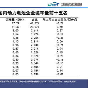 比亚迪(002594.SZ)以11.42 GWh的装车量排在第二位,其市占率达28.97%,较前一月增加0.6个百分点。