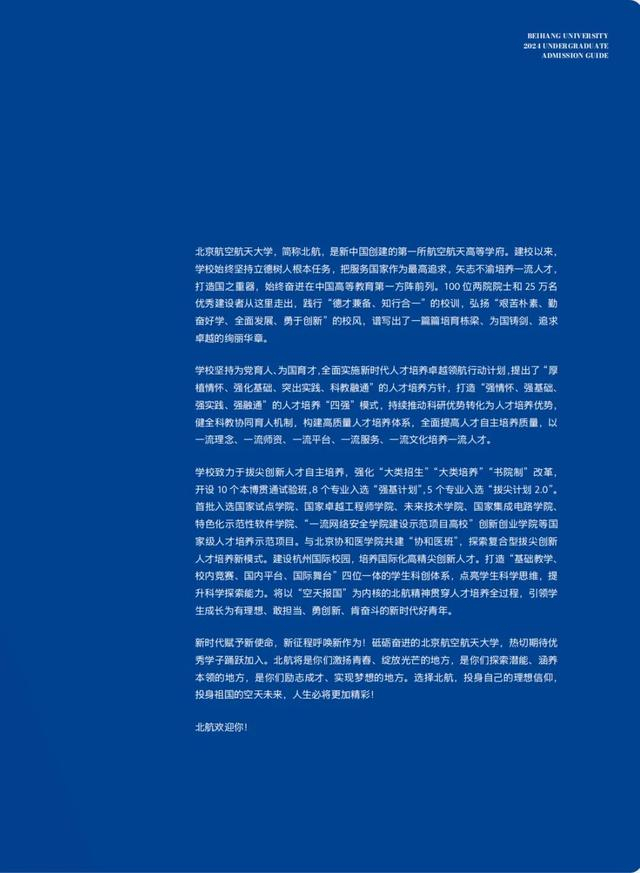 北航2024年招生政策、人才培养方案