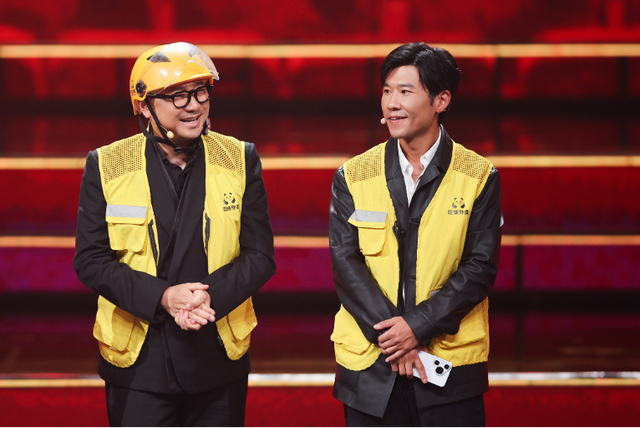 徐峥在《逆行人生》中饰演外卖员,以剧中角色形象登台推介新片