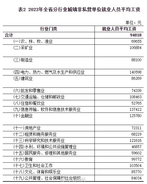 2023年,全省城镇非私营单位就业人员平均工资94818元,比上年增加4073元,增长4.5%。