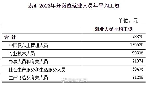 不同岗位平均工资,是在一套表联网直报单位范围内,具体包括规模以上工业、有资质的建筑业、限额以上批发和零售业、限额以上住宿和餐饮业、全部房地产开发经营业、规模以上服务业共16个行业门类的4.18万家法人单位,对447.3万名就业人员不同岗位的工资情况进行了全面调查。调查单位的就业人员按岗位分为中层及以上管理人员、专业技术人员、办事人员和有关人员、社会生产服务和生活服务人员、生产制造及有关人员5类。
