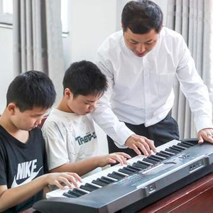 潘家贺在教孩子弹琴