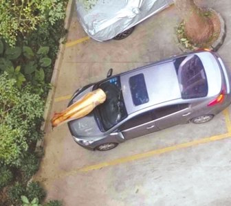 最近,大王椰树叶又“闯祸”了!这次中招的是广东的一位车主,一片大王椰的树叶落下,正好“砸”中他的黑色小轿车,挡风玻璃直接被戳破一个大洞。