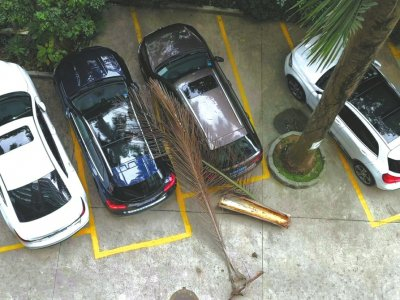 大王椰叶子又大又重,历年来它们伤人毁物的事时有发生。社交平台上,更是有不少网友晒出了自己不慎被它们“伤害”的图片。因此,一些种植大王椰的城市,会在路边的树干上贴着“当心树叶和花朵坠落”的警示,提醒人们小心。