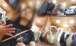 记者跟着一名“拉客仔”进入南方国际钟表城,据他所说,高品质的假货就在楼上。看到记者进来,守在电梯口的商贩立即上前要求查验身份。据商贩说,如果是政府人员、媒体记者就不能进去。记者以代购身份来到六楼,走廊边的商铺大门紧闭,玻璃墙后是厚厚的帘子,不透一丝光亮。门口蹲坐着几名男子,确认了“拉客仔”身份后,才将大门推开。在占地不到80平方米的商铺内有四五名女店员,货架上摆满了各种假冒名牌皮包。有顾客问价时,女店员会谨慎地将价格在计算器上按出。