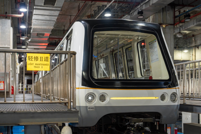 经过一天忙碌的工作,APM列车就可以回到车厂“洗白白”,进行“休息”。APM列车的“寝室”在广州塔站后方,里面总共有4个车道,其中有一个是做大型“手术”的车道,其他车道可以用于存车和洗车。