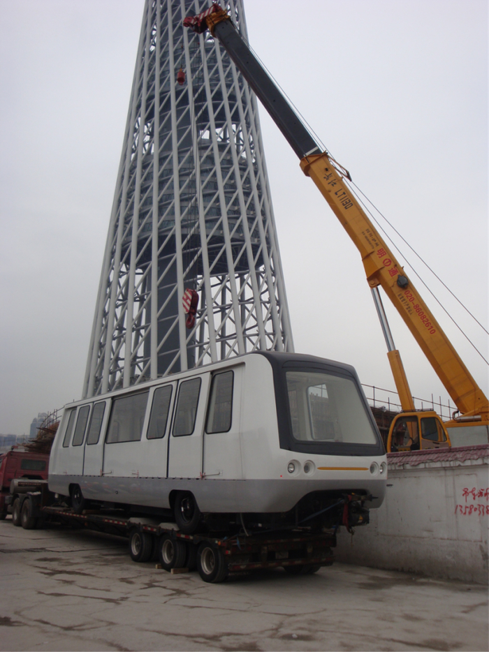 (2010年3月20日,第一列广州地铁APM线列车进入广州塔停车场)