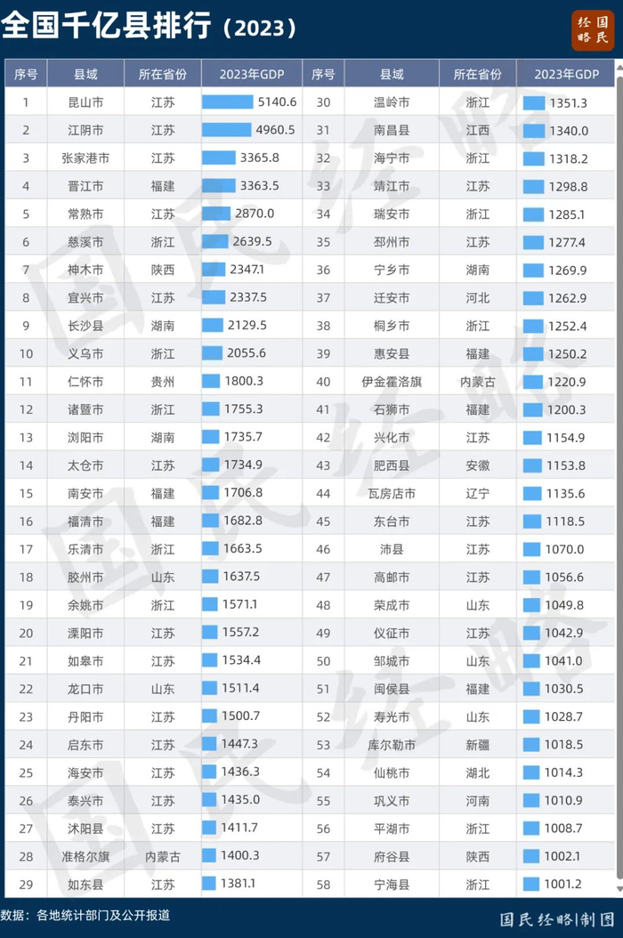 日前,全国各地陆续披露最新GDP数据,千亿GDP县城俱乐部扩容到58席,比前一年新增5县。