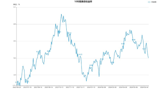 美国5月CPI同比增长3.3%,环比增长0.2%,均有所放缓;核心CPI同比增长3.4%,仍然处于持续下降通道。叠加失业率上升至4%,导致市场对美联储降息的预期再次提前至9月。