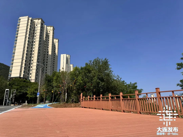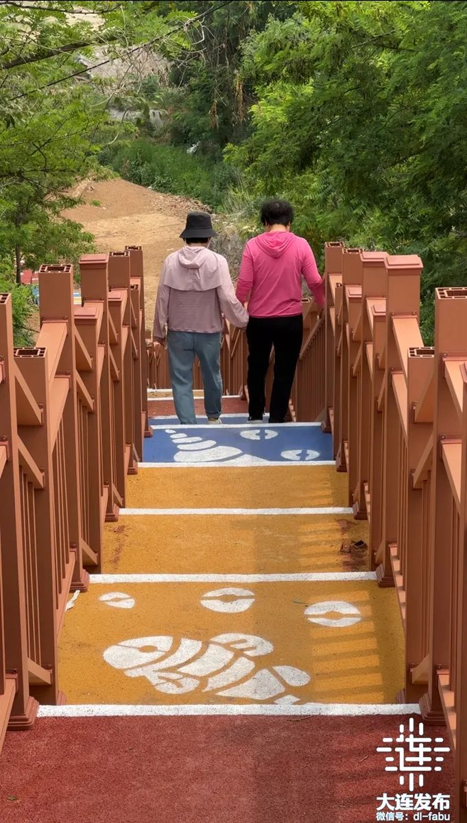 ● 彩色陶瓷防滑颗粒铺设的新建登山步道将港东八街至华乐街步行路线打通,全长约190米,同时连通了最美公交站(201终点站)与东港旅游度假区;