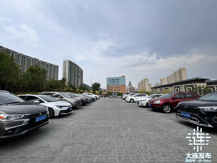 在“小汽车”的正对面、港东五街东侧与华乐街交叉口处,是一片新修建落成的停车场,里面井然有序地停放了不少前来打卡市民游客的车辆。