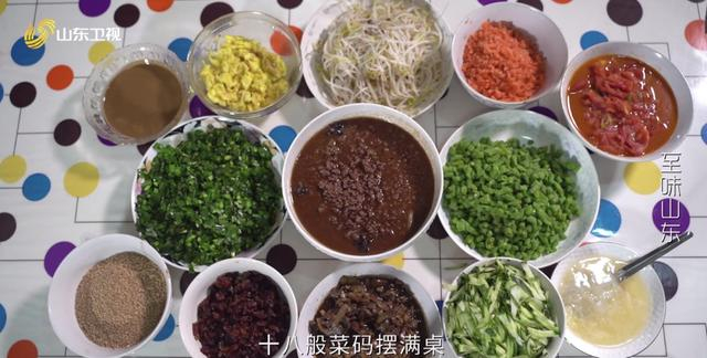 什香面,是聊城临清最具运河文化特色的美食之一。一碗面之中,可尝遍百味。红白黄绿紫,五色交织;鲜咸香辣酸,五味交融;色香味形,完美统一。面条手工擀制,筋道爽口;菜码丰富多样,精彩纷呈;饭菜合一,自成一席。临清什香面是面条与菜码的完美组合,更是中国南北文化的交汇融合。一份面,一桌席,见证着运河商贸的繁荣和运河文化的昌盛,也成为京杭大运河饮食文化历史的缩影。