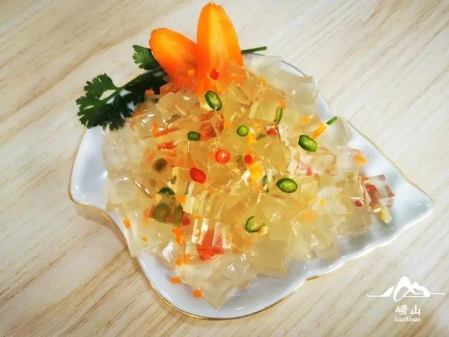 青岛的海菜凉粉起源于崂山,和内陆使用淀粉、绿豆制成的凉粉有所不同,它的原材料是崂山特产石花菜。海菜凉粉糅合了北方和大海的味道,海石花口感扎实韧滑,清凉滋润,剔透晶莹,本味淡淡的,带有一缕幽谧的海洋气息。青岛人爱加了蒜泥、香菜、海米、黄瓜丝、醋、生抽等做成炎热夏日里逗人食欲的小菜,五味俱全,鲜爽解暑,可以一品独特的青岛滋味。