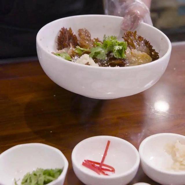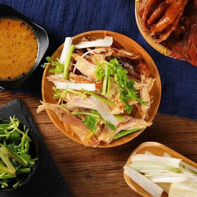 芥末鸡用的芥末,是发酵过的黄芥末,与北京的芥末墩相似。白卤过的鸡撕成筷子粗细的鸡丝,搭配上白菜丝、萝卜丝、胡萝卜丝等配菜,浇上黄芥末、老陈醋、卤鸡的汤,一口清辣通窍,忍不住让人直呼一个“爽”字!