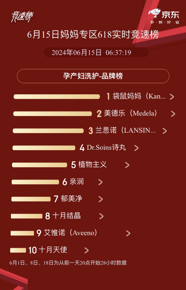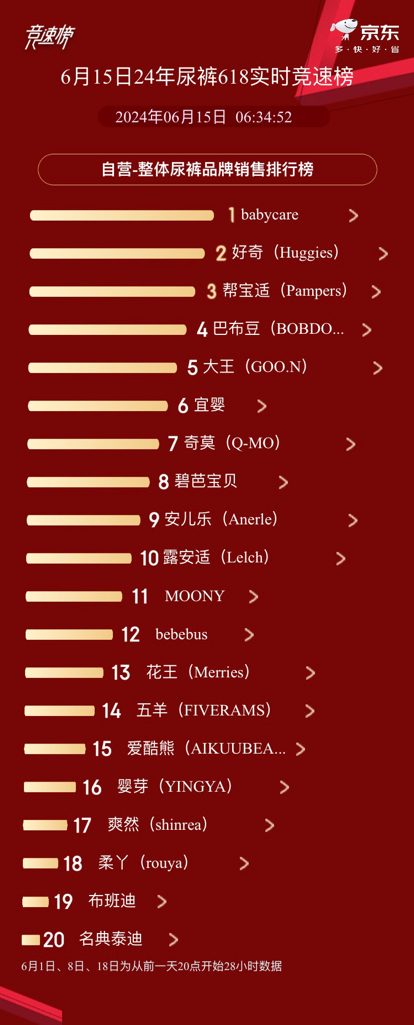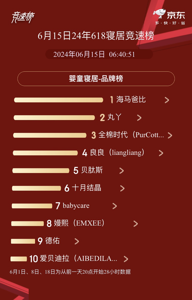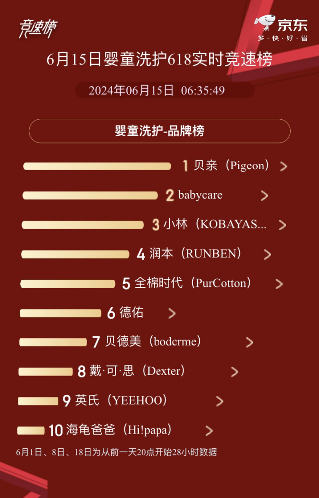 京东超市618再发母婴品牌竞速榜:爱他美、babycare、贝亲等品牌登顶8大品类销冠